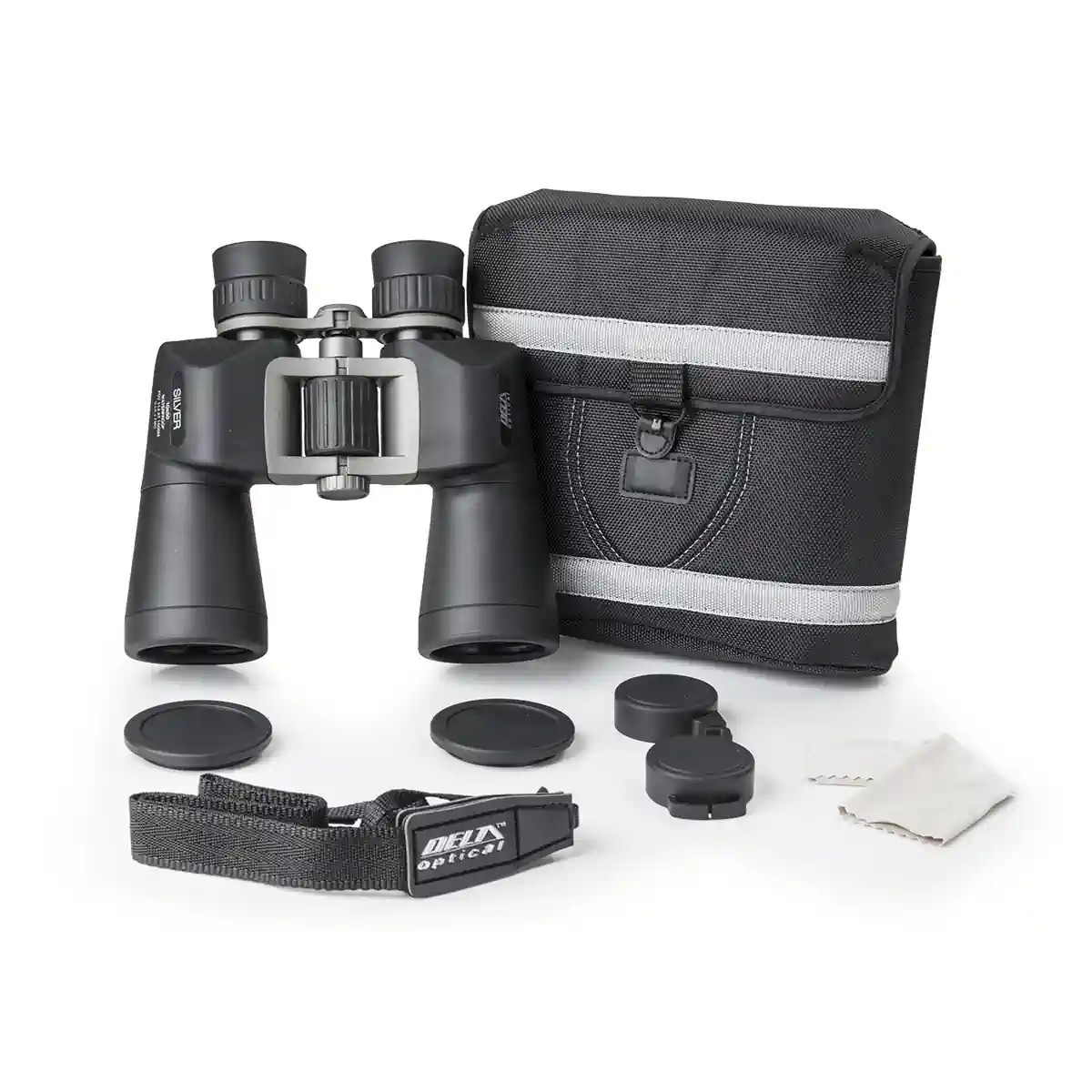 Wyposażenie Pokrowiec na lornetkę, pasek na szyję, osłony obiektywów i okularów, ściereczka do pielęgnacji optyki.