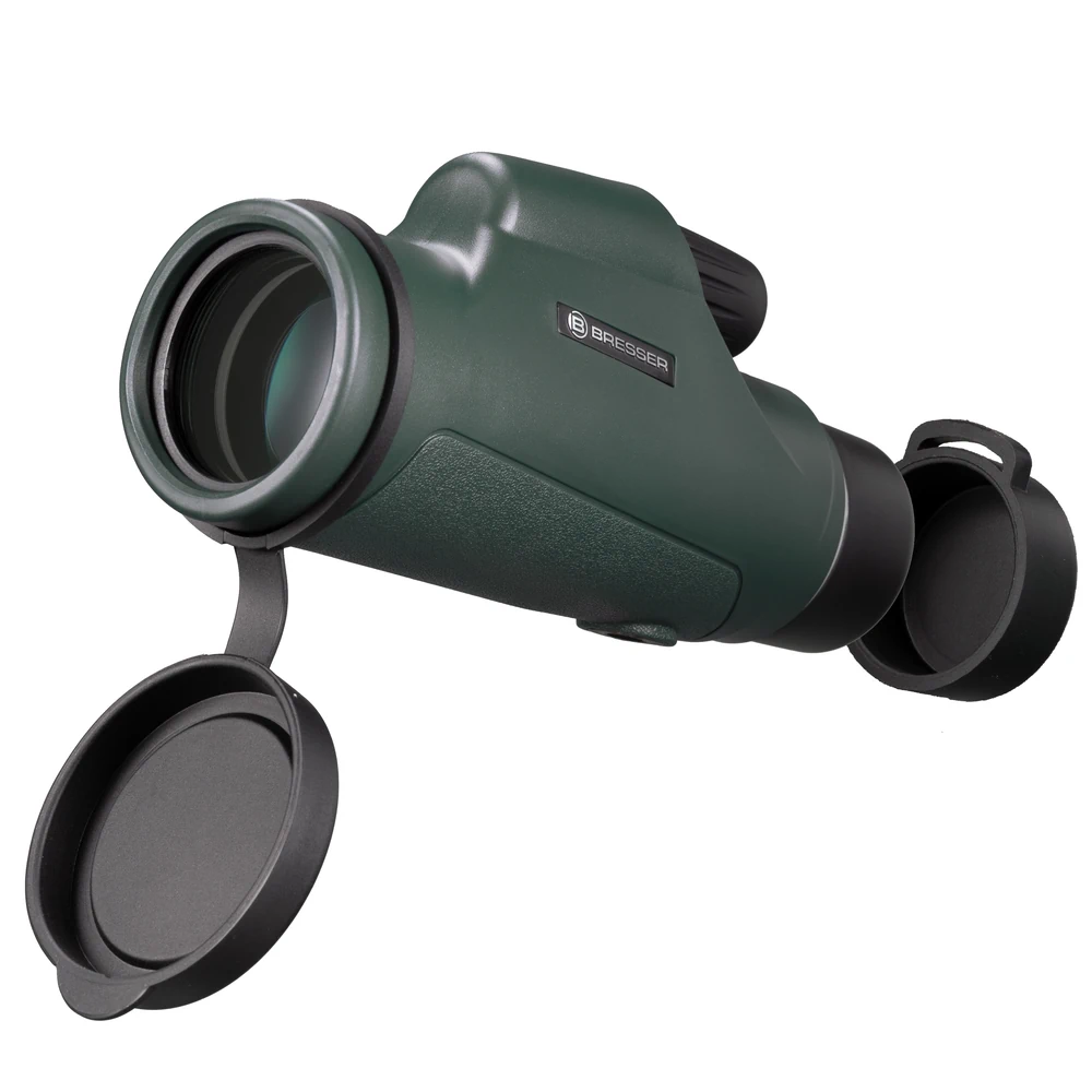 Monokular Bresser 10x42 to przyrząd optyczny typu monokular luneta. Często nazywany również lornetką na jedno oko. Produkt posiada jasny obiektyw 42mm oraz powiększenie 10 x. Do wykonania optyki monokularu zastosowano szkło BK7. Dodatkowo napylone powłoki antyrefleksyjne MC (z ang. Multi Coating) poprawiają transmisję światła. Pryzmaty monokularu zaprojektowano w układzie dachowym. Wykonane zostały również ze szkła BK7. Tubus monokularu został uszczelniony, dzięki czemu produkt jest wodoszczelny. Dobre uszczelnienie chroni również monokular przed dostaniem się do środka cząstek stałych. Kurz i inne zabrudzenia pogarszają komfort obserwacji. Wypełnienie azotem chroni soczewki przed zaparowaniem od środka.