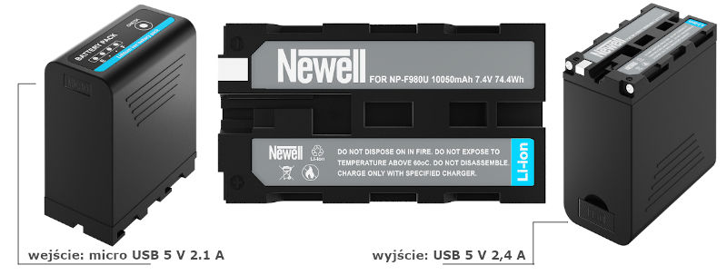 - Newell NP-F980 micro USB o pojemności 10050mAh,