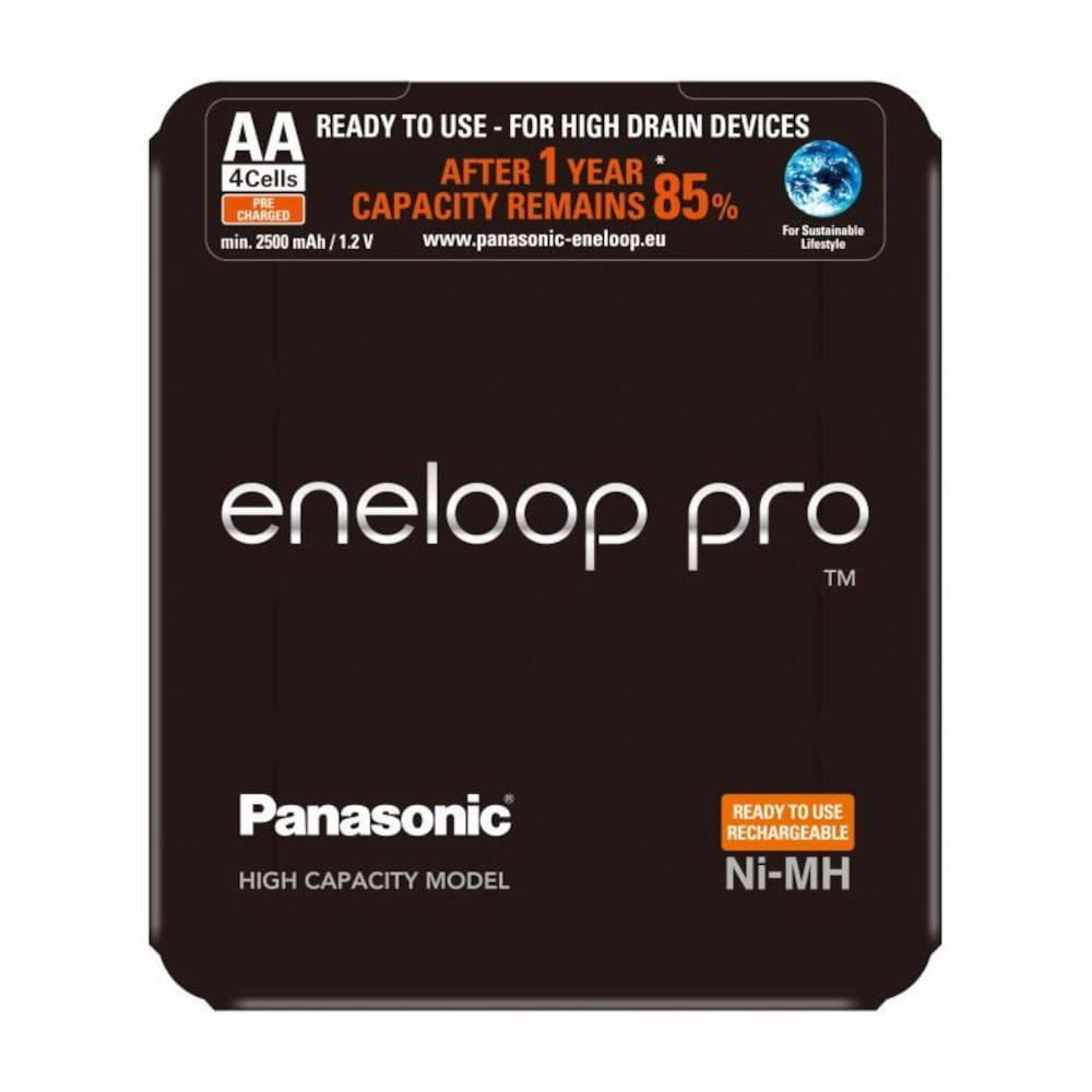 Panasonic Eneloop pro 2500 mAh to akumulatory o najwyższej mocy i zwiększonej wydajności. Przeznaczone dla profesjonalistów ceniących sobie komfort pracy. Dzięki dużej pojemności 2500 mAh eneloop pro polecane są do zasilania aparatów cyfrowych, lamp błyskowych i wszędzie tam gdzie chcemy mieć pewność długiej i niezawodnej pracy ze sprzętem.