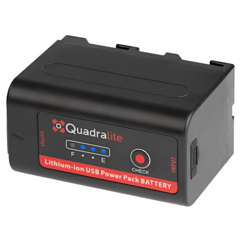 Akumulator Quadralite NP-F970Pro-USB wykonany jest z wysokiej jakości ogniw o rzeczywistej pojemności 7800mAh. Stworzony w technologii litowo-jonowej, nie posiada negatywnego efektu pamięciowego. Akumulator NP-F970Pro-USB ładowany jest poprzez dołączony do zestawu kabel USB, a akumulator podładować można bez wcześniejszego jego pełnego rozładowania.