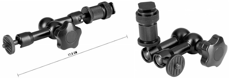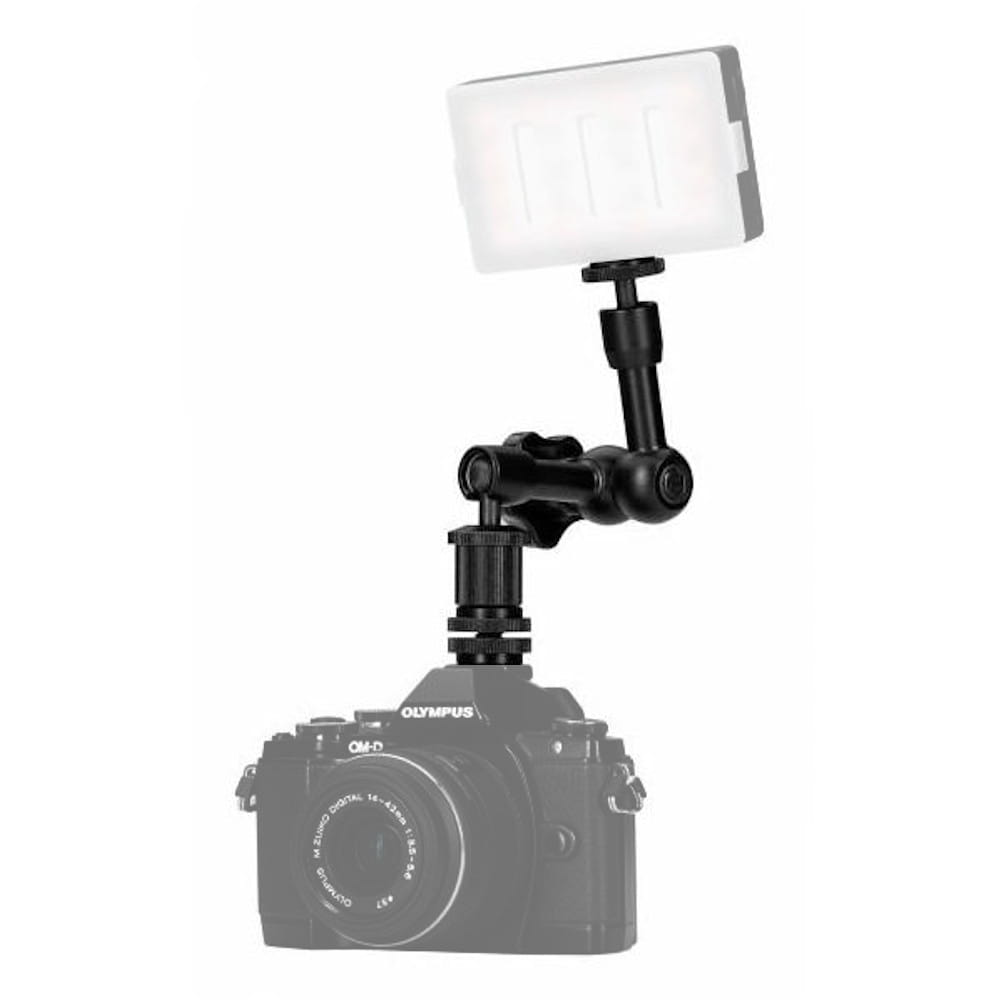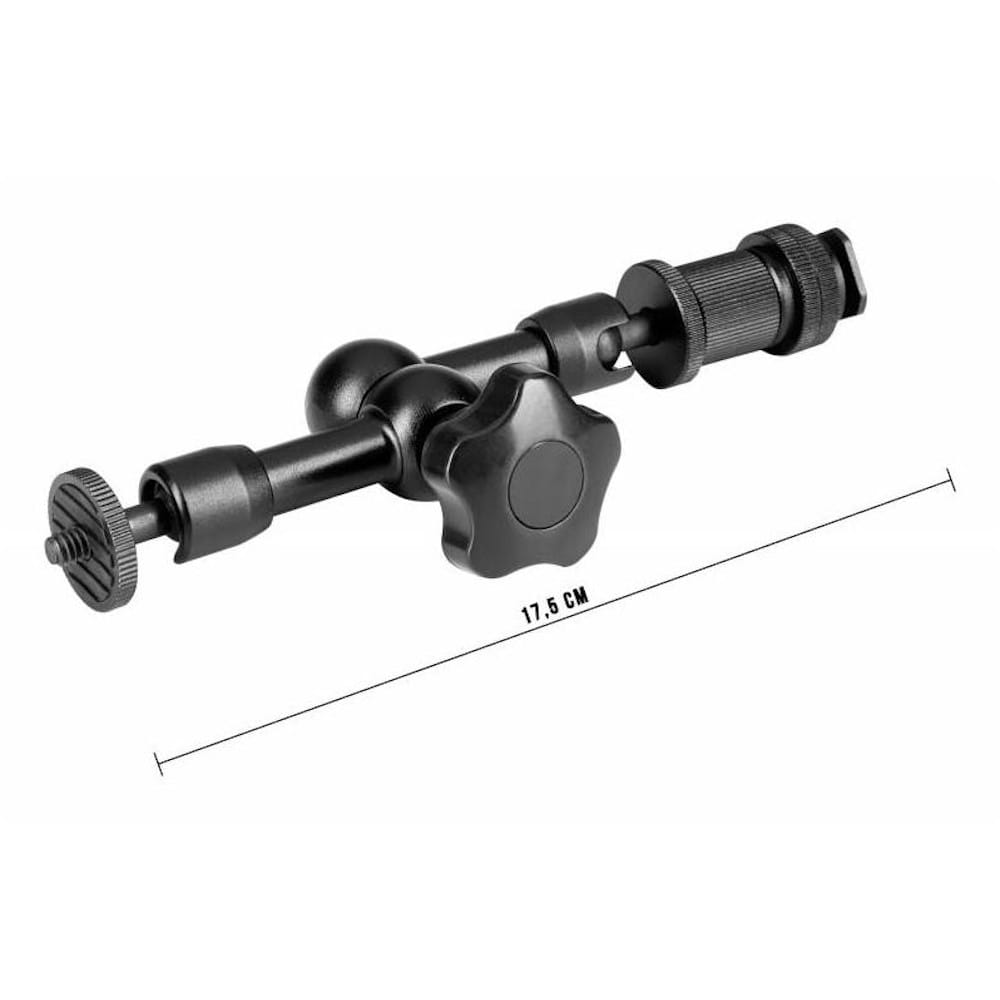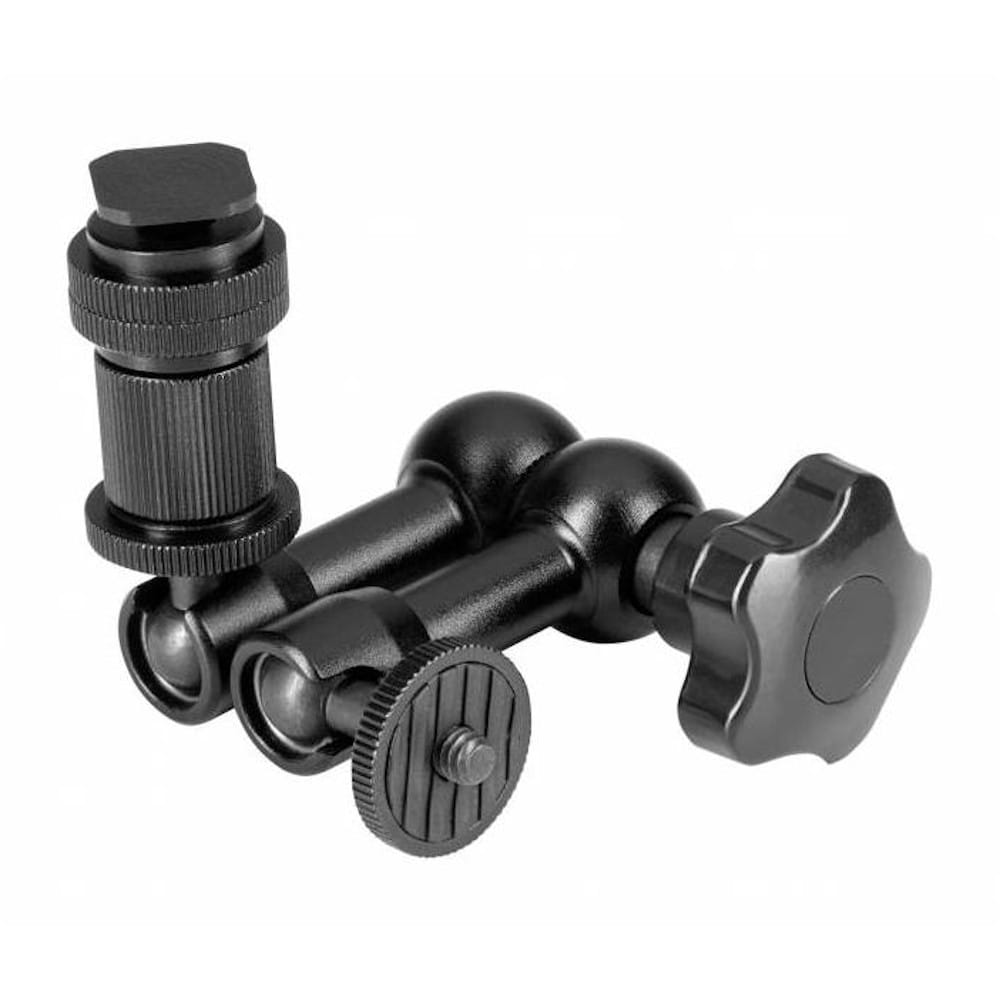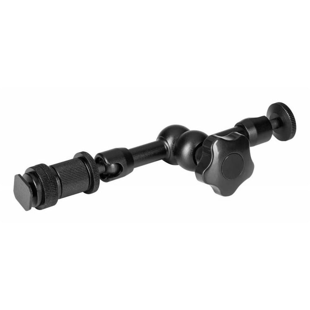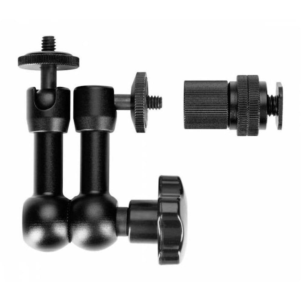 Magic Arm umożliwia rozbudowę zestawu foto-video o kolejne elementy, w wygodny i funkcjonalny sposób. Ramię umożliwia montaż oraz ustawienie w prawie dowolnej pozycji akcesoriów o masie nieprzekraczającej 1kg. Za pomocą jednego wygodnego w użyciu pokrętła blokujemy wszystkie ruchome części ramienia. Głowice ramienia wyposażone zostały w standardowe mocowanie statywowe męskie 1/4 cala, kompatybilne z większością sprzętu fotograficznego i filmowego. Dodatkowy trzpień z zimną stopką pozwala na bezpośrednie zainstalowanie akcesorium na sankach aparatu.