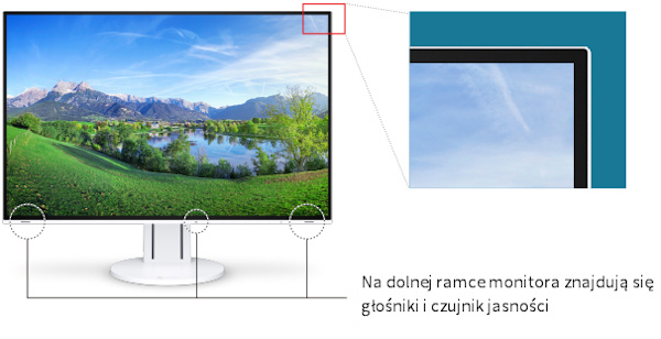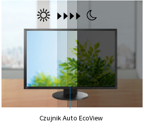 Czujnik Auto EcoView wykrywa zmiany oświetlenia zachodzące w otoczeniu w ciągu dnia i automatycznie ustawia optymalny poziom jasności ekranu, aby zapobiec zmęczeniu oczu.