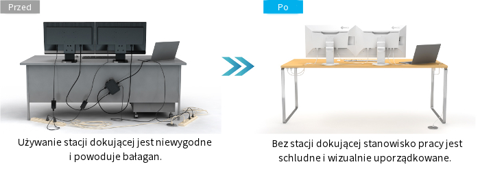 Kiedy pracujemy na laptopie lub małym monitorze, nie mamy możliwości wygodnego wyświetlania kilku okien naraz. Rozwiązaniem tego problemu są połączenia szeregowe, dzięki którym nawet do laptopa czy małego komputera z jednym portem wyjściowym można podłączyć aż do czterech monitorów. W ten sposób przestrzeń robocza zwiększa się aż trzykrotnie, co pozwala swobodnie korzystać z wielu programów jednocześnie.