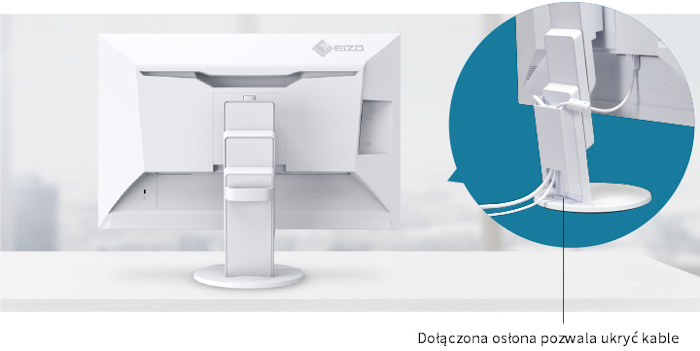Na tylnej ścianie monitora zastosowano rozwiązania dzięki którym z łatwością przeniesiesz monitor, zmienisz jego położenie i schowasz kable dla zachowania porządku i estetyki.
