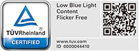 Monitory FlexScan mają certyfikat TÜV Rheinland potwierdzający niską emisję niebieskiego światła i brak migotania obrazu.