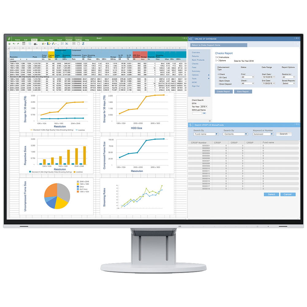 Z reguły środowiska wieloekranowe nie są zbyt miłe dla oka – króluje w nich plątanina kabli i wielkie, niezgrabne monitory. EV2457 to monitory o lekkim, eleganckim wyglądzie, które można wygodnie postawić obok siebie, tworząc estetyczną i praktyczną konfigurację wielomonitorową.