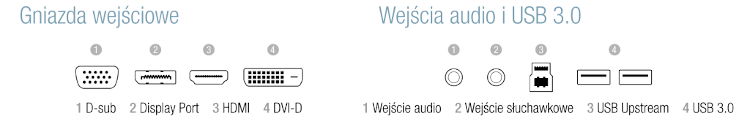 | Wejścia sygnału | D-Sub mini 15 pin x 1, DVI-D 24 pin x 1 (z HDCP), HDMI x 1 (z HDCP), DisplayPort x 1 (z HDCP) |