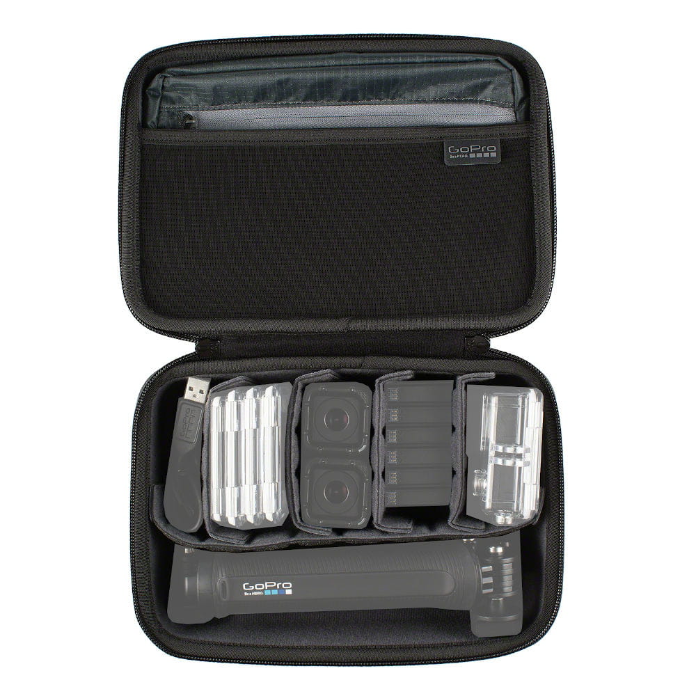 To lekkie etui doskonale sprawdzi się w podroży. Możesz spakować do niego swój sprzęt GoPro i ruszać na kolejną przygodę. Jest na tyle pojemne, że z łatwością zmieszczą się w nim kamera, uchwyty i inne akcesoria, a przy tym na tyle małe, że można je włożyć do torby i zabrać ze sobą. Etui jest odporne na niekorzystne warunki pogodowe oraz ma elastyczną przegrodę, która umożliwia ułożenie przedmiotów w dowolny sposób.