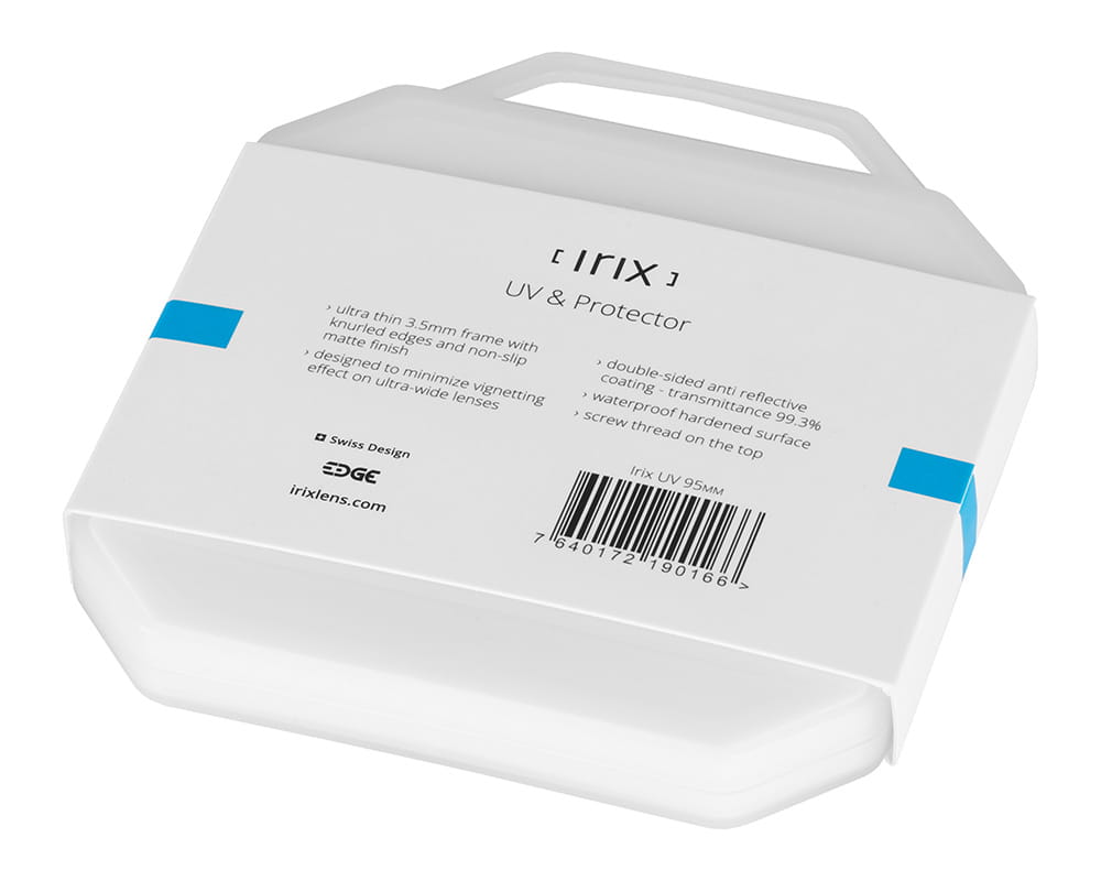Filtr Irix Edge UV odcina niepożądane promieniowanie UV mogące powodować spadek kontrastu na zdjęciach krajobrazowych wykonywanych w górach i na dużej wysokości. Lekka, niskoprofilowa oprawka filtra zaprojektowana została specjalnie do obiektywów Irix 15mm f/2.4, dzięki czemu doskonale harmonizuje z ich klasycznym wzornictwem, nie powodując przy tym winietowania. Dodatkowy gwint w górnej części filtra pozwala zamocować dekielek w rozmiarze 95mm, stanowiąc tym samym dodatkową ochronę obiektywu w czasie transportu.