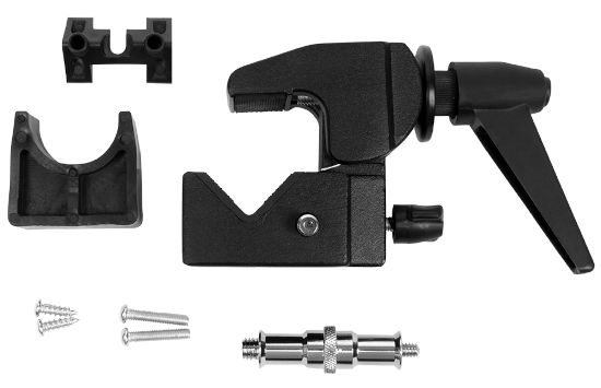 Do uchwytu GlareOne Super Clamp można podpiąć, najróżniejsze akcesoria od haków do zawieszania teł po wszelkiego rodzaju łączniki, magiczne ramiona, lampy itp. Bez problemu można łączyć ze sobą dwa super clampy by mocować je do bardziej złożonych konstrukcji. Uchwyt GlareOne Super Clamp jest szybki i łatwy w obsłudze. Posiada gwinty M6 i 1/4'' oraz gniazdo 16 mm (5/8'') do mocowania akcesoriów. Posiada specjalne wkładki z wzmacnianego tworzywa do mocowania przy płaskich powierzchniach.