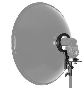 Zastosuj studyjne modyfikatory światła ze swoją reporterską lampą błyskową, za pomocą uchwytu GlareOne z zaciskanymi sankami do mocowania lampy błyskowej i pierścieniem systemu Bowens. Cała konstrukcja jest solidnie wykonana z metalu, może utrzymać modyfikatory beauty dish 70 cm oraz softboxy oktagonalne do 90 cm.