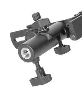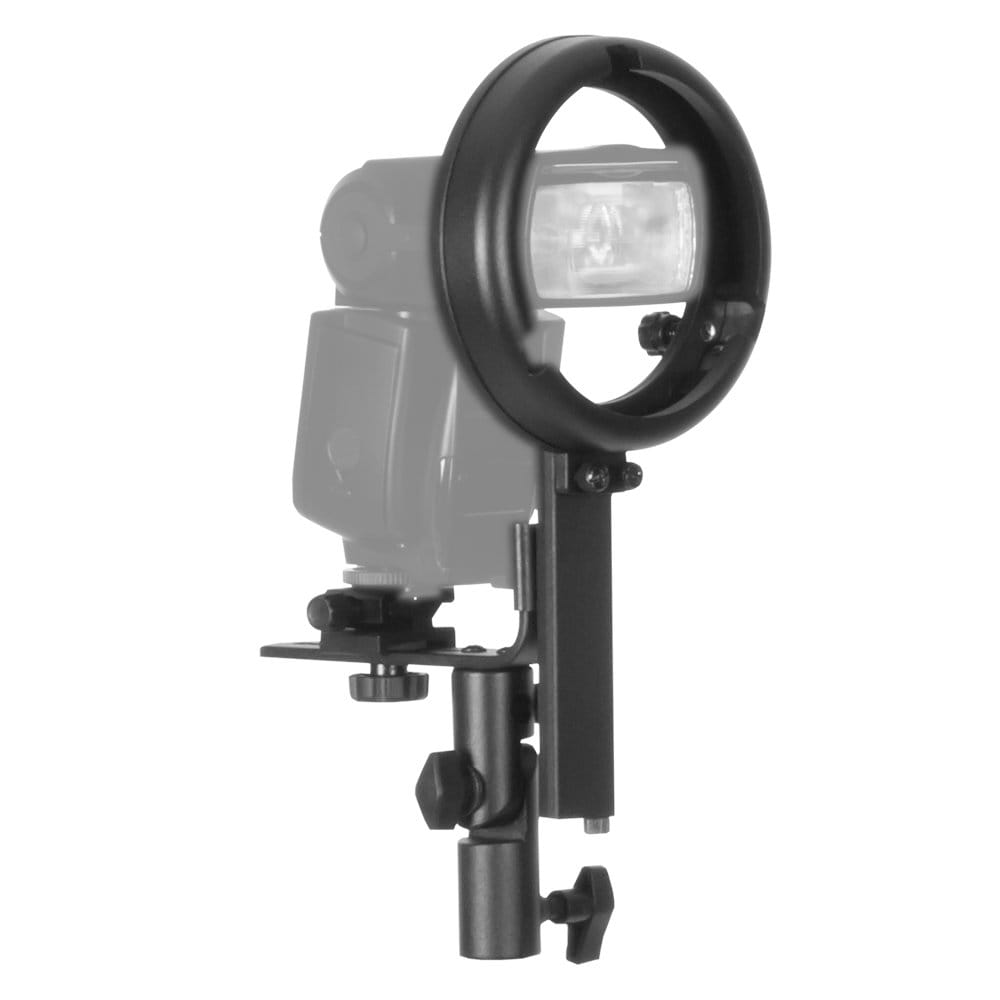 Kąt nachylenia uchwytu można regulować w zakresie -15° do +90° blokowany solidną śrubą. Do uchwytu można zastosować prawie wszystkie lampy błyskowe. Nie zamocujemy lamp ze stopką starszego typu w standardzie Sony/Minolta. Uchwyt możemy zamocować zarówno na statywie oświetleniowym jak i fotograficznym za pomocą adaptera z gwintami żeńskimi 3/8" i 1/4".
