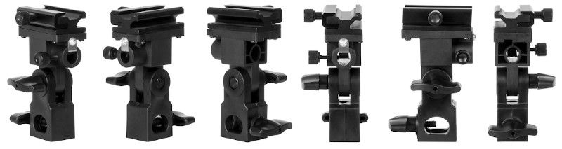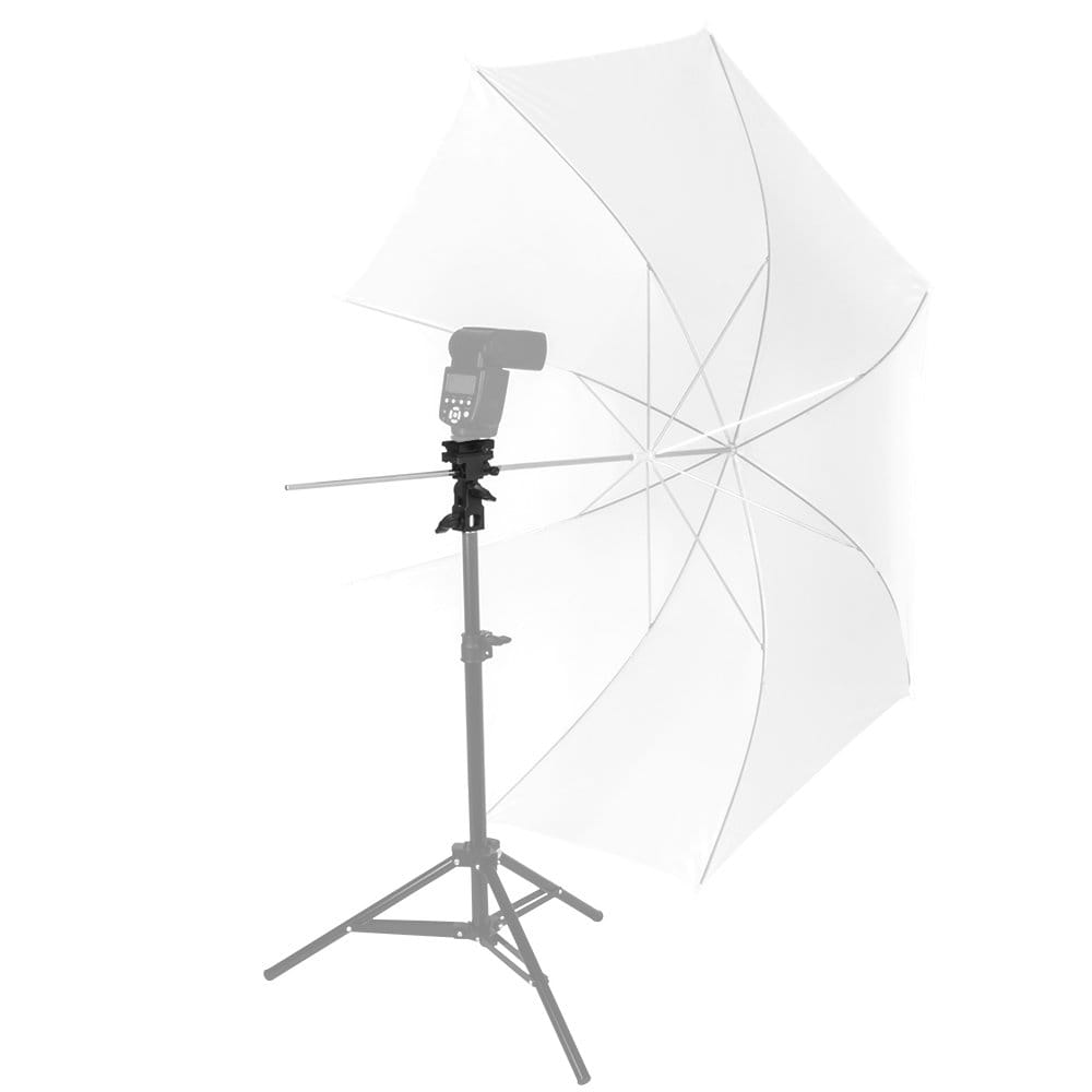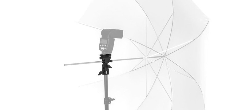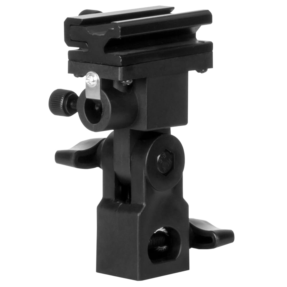Uchwyt pozwala zamocować lampę reporterską wraz z parasolką fotograficzną. Wyposażony w przegub pozwala na odchylenie lampy w zakresie -90°/+90°.