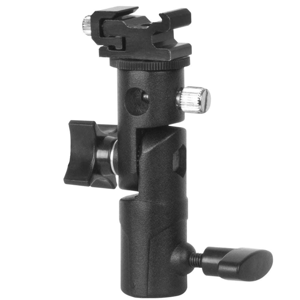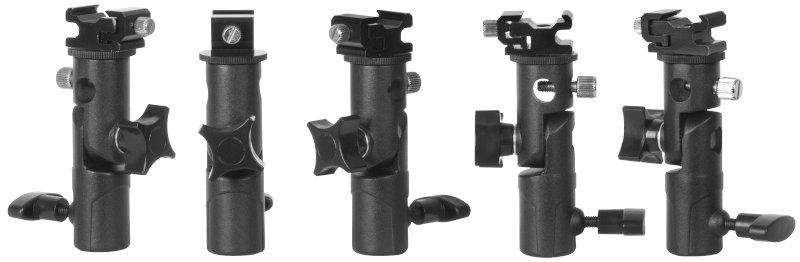 Uchwyt pozwala zamocować lampę reporterską wraz z parasolką fotograficzną. Wyposażony w przegub pozwala na odchylenie lampy w zakresie -90°/+90°.