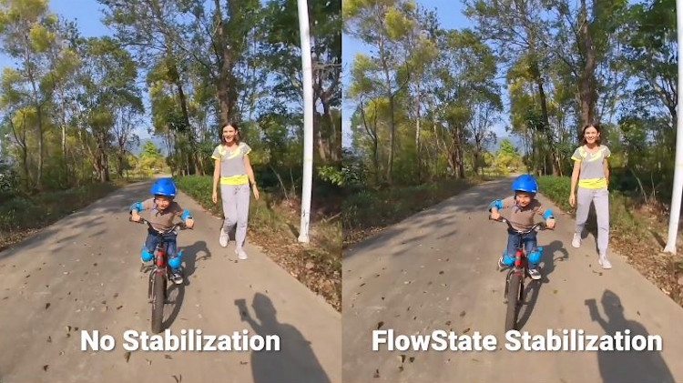 W trybie 360° 2D Evo wykorzystuje cyfrową stabilizację obrazu FlowState firmy Insta360, która eliminuje poruszenia uchwycone w czasie kręcenia filmów, dzięki czemu obraz jest płynnie odtwarzany. Podstawowa stabilizacja żyroskopu jest stosowana w trybie 3D 180°, który pomaga ustabilizować drobne wstrząsy. Stabilizacja obrazu przydaje się podczas korzystania z funkcji hyperlapse evo i zwolnionego tempa do 100 kl./s.