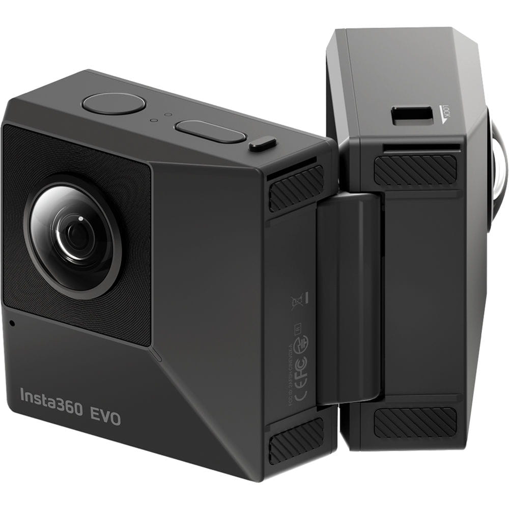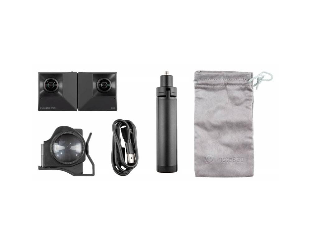 Stwórz doskonałe profesjonalne wideo 360/180° 2D i 3D VR przy pomocy kamery 3D Insta360 Evo. To niewielkich rozmiarów składane urządzenie pozwala na nagrywanie w dwóch różnych formatach. Przy złożonej obudowie obiektywy są po obu stronach co pozwala nagrać wideo 360° 2D. Przy rozłożonej na płasko obudowie obiektywy są po jednej stronie i wtedy możemy nagrywać wideo 180° 3D.