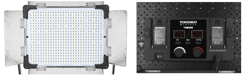 Na panel świetlny składa się 600 diod LED, z których połowa emituje światło o temperaturze barwowej 3200 K, a druga połowa o temperaturze 5500 K. Dzięki funkcjonalności zmiany natężenia światła generowanego przez poszczególne grupy diod lampa oferuje możliwość płynnej regulacji mocy oraz temperatury barwowej światła w przedziale od 3200 K do 5500 K. Sterowanie funkcjami YN6000 może być realizowane przy użyciu dwóch potencjometrów umieszczonych z tyłu lampy. Po zakupieniu odbiornika możliwość sterowania bezprzewodowo przy pomocy radiowego pilota lub poprzez aplikację mobilną na telefonie. YN6000 wyposażona została także w czytelny wyświetlacz LCD, ułatwiający precyzyjną zmianę ustawień oraz kontrolę stanu akumulatorów.