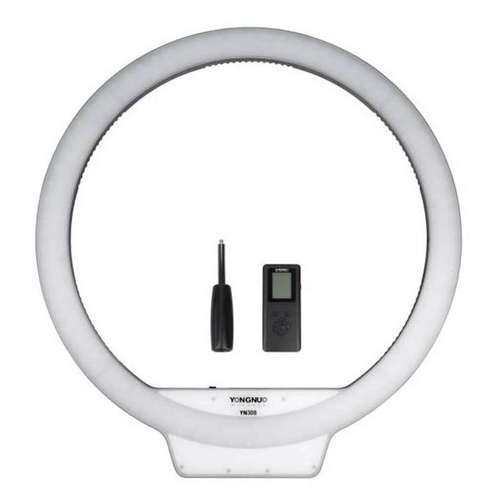 Yongnuo YN308 to pierścieniowa lampa LED przeznaczona dla fotografów portretowych i nagrywających video. Dwa rodzaje diod pozwalają na płynną regulację temperatury barwowej światła w przedziale 3200 K - 5500 K. Panel lampy składa się z 304 diod LED o wysokim współczynniku reprodukcji barw. Współczynnik CRI na poziomie 95+ zapewnia wierne odwzorowanie kolorów, np. skóry, makijażu. Okrągły kształt lampy zapewnia charakterystyczne odbicia w oczach. Lampa YN308 zaprojektowana została z myślą o fotografii portretowej, studyjnej oraz makro. Duży rozmiar ponad 50 cm średnicy pozwala na oświetlenie większych powierzchni. Panel dyfuzyjny umieszczony z przodu lampy chroni diody przed uszkodzeniami, jednocześnie rozprasza światło i nadaje mu przyjemną miękkość.