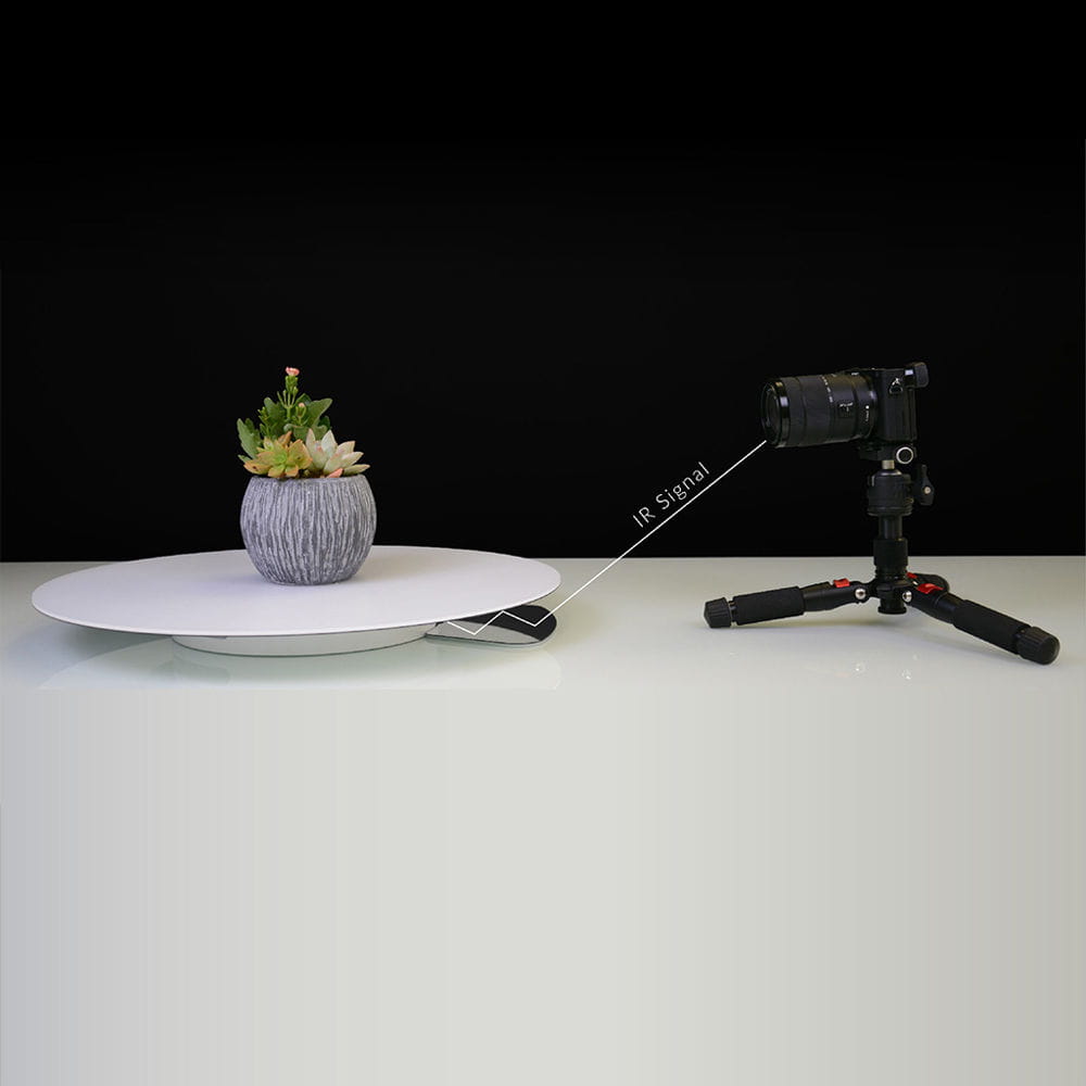 Nadaje się do większych obiektów o wadze do 5 kilogramów. Rozszerzenie Foldio360 ma odbiornik podczerwieni, który może odbierać sygnały bezprzewodowe z lustrzanki cyfrowej lub smartfona.