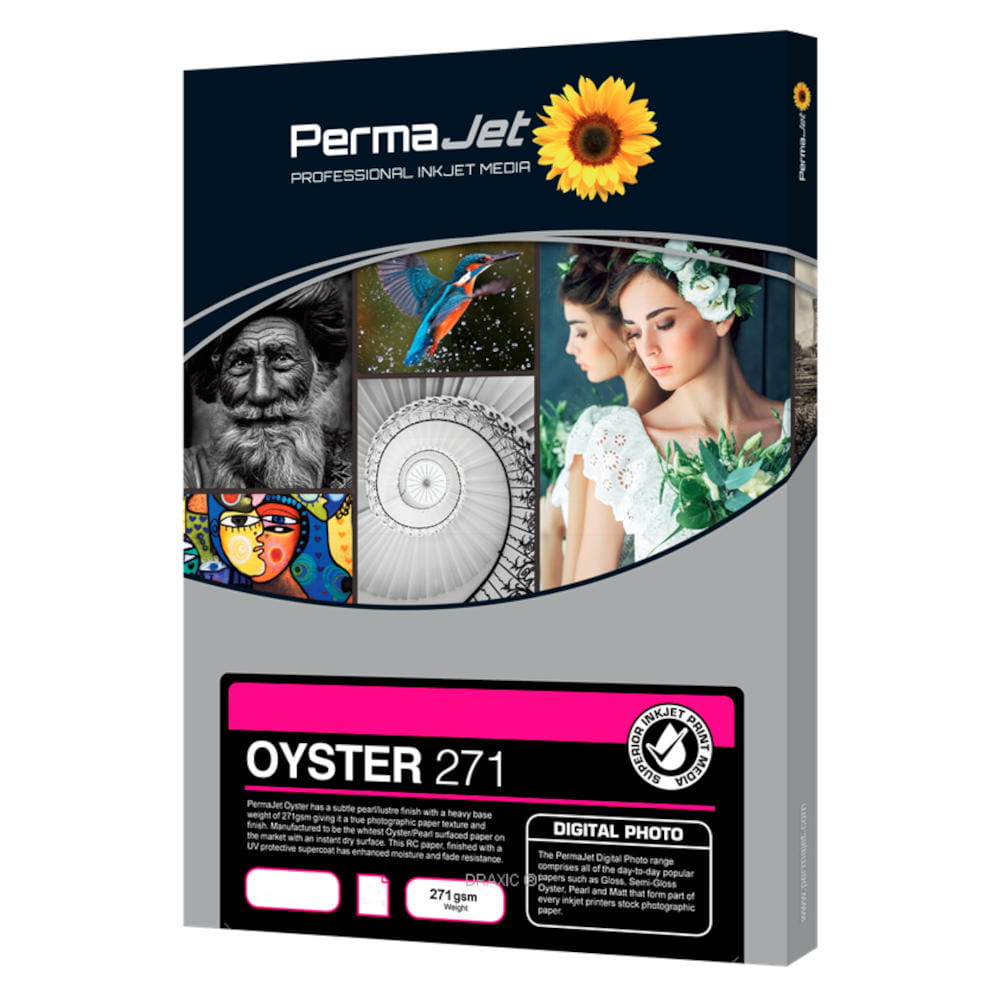PermaJet Oyster to papier fotograficzny mający subtelną błyszczącą perłową powierzchnię i dużą gramaturę 271 g / m2, co odzwierciedla prawdziwą teksturę i wykończenie papieru fotograficznego. PermaJet Oyster jest najbielszym papierem na rynku wyprodukowanym o takiej powierzchni. Papier fotograficzny PermaJet Oyster 271 jest niezwykle mocny i błyskawicznie schnący. Powlekany żywicą papier jest wykończony mikroporowatą warstwą ochronną chroniącą przed promieniowaniem UV, zapewniającą to wysoki stopień odporności na wodę i blaknięcie obrazu.