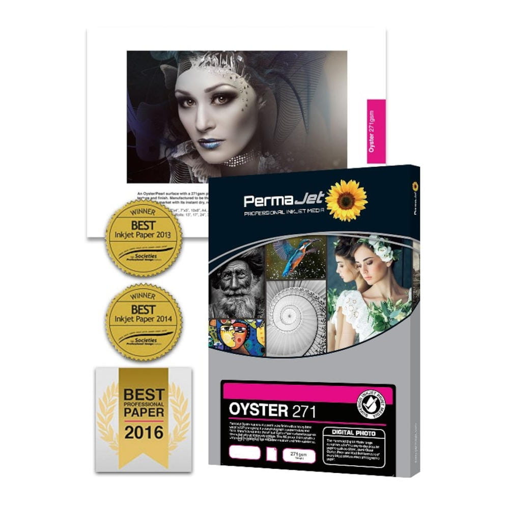PermaJet Oyster to papier fotograficzny A4 mający subtelną błyszczącą perłową powierzchnię i dużą gramaturę 271 g / m2, co odzwierciedla prawdziwą teksturę i wykończenie papieru fotograficznego. PermaJet Oyster jest najbielszym papierem fotograficznym na rynku wyprodukowanym o takiej powierzchni. Papier fotograficzny PermaJet Oyster 271 jest niezwykle mocny i błyskawicznie schnący. Powlekany żywicą papier do zdjęć jest wykończony mikroporowatą warstwą ochronną chroniącą przed promieniowaniem UV, zapewniającą wysoki stopień odporności na wodę i blaknięcie obrazu.