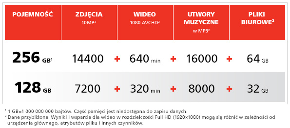 Pojemności: 256 GB,