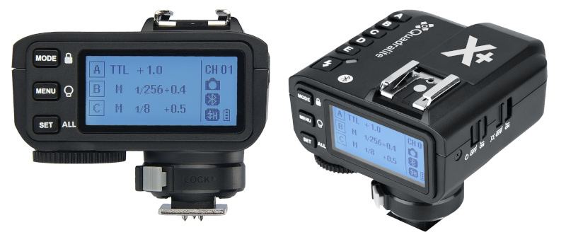 Zachowując niewielką obudowę udało się zmieścić niemal wszystkie funkcje znane z modelu X2 jednocześnie dodając nowe. Największą nowością w modelu X Plus jest wbudowany system Bluetooth, który pozwala połączyć go z aplikacją Quadralite Photo App służącą do sterowania lampami błyskowymi z poziomu telefonu czy tabletu (Android i iOS). Kolejną nowością w stosunku do swojego poprzednika jest pojawienie się na obudowie pięciu klawiszy (A,B,C,D,E), które otwierają bezpośrednie dojście do sterowania pięcioma grupami lamp błyskowych.