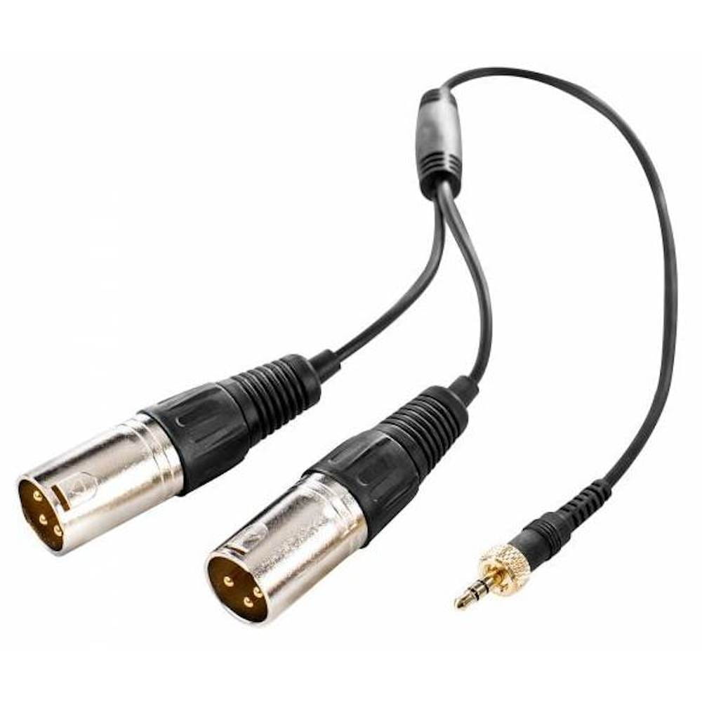 Saramonic SR-UM10-CC1 to najwyżej jakości stereofoniczny rozgałęźnik audio wyposażony w trzypinowy wtyk mini Jack 3,5 mm oraz dwa trzypinowe wtyki XLR męskie.