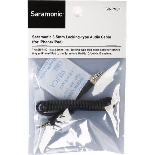 Saramonic SR-PMC1 to najwyżej jakości stereofoniczny kabel audio wyposażony w czteropinowy wtyk mini Jack 3,5 mm do urządzeń iOS oraz trzypinowy wtyk mini Jack 3,5 mm. Kabel przeznaczony jest do współpracy z urządzeniami marki Apple lub kompatybilnymi, wyposażonymi w gniazda typu mini Jack 3,5 mm. SR-PMC1 zaprojektowany został do współpracy z systemem Saramonic UwMic9, ale może być użyty także z innymi kompatybilnymi urządzeniami.
