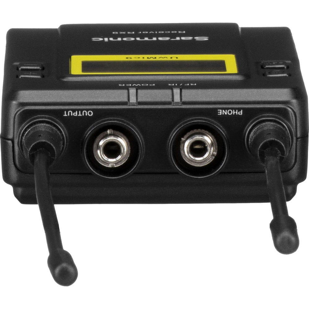 Elementem wspólnym systemu jest odbiornik Saramonic RX9 umożliwiający odbieranie jednocześnie ścieżek dźwiękowych z dwóch kanałów. Odbiornik wyposażony został w dwa wyjścia mini Jack (3,5 milimetra) z blokadą zabezpieczającą przed przypadkowym odłączeniem kabla. Do odbiornika podłączyć można urządzenie rejestrujące oraz słuchawki do odsłuchu przekazywanego sygnału. Każdy z nadajników posiada jedno wejście w standardzie mini Jack (3,5 milimetra) umożliwiające podłączenie mikrofonu lub innego źródła dźwięku i zostało również wyposażone w blokadę zabezpieczającą przed przypadkowym odłączeniem kabla.