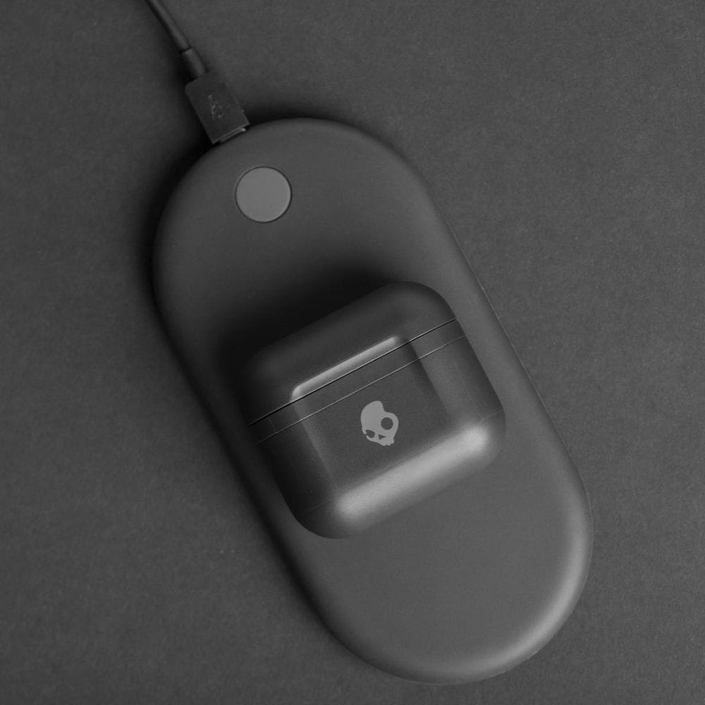 Prawdziwa wolność to Skullcandy i muzyka bez kabli. True Wireless oznacza zupełny brak przewodów. W przypadku Indy Fuel oznacza nawet ładowanie etui bezprzewodowo. Połóż na podkładce ładującej (lub sparuj z dowolną ładowarką Fuelbase™). Słuchawki bezprzewodowe Skullcandy z etui-ładowarką pozwolą na 30 godzin słuchania.
