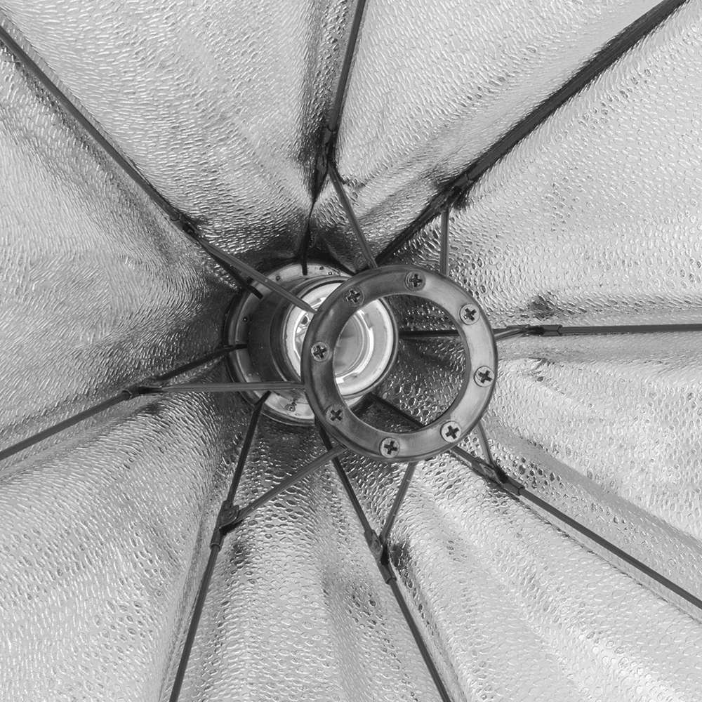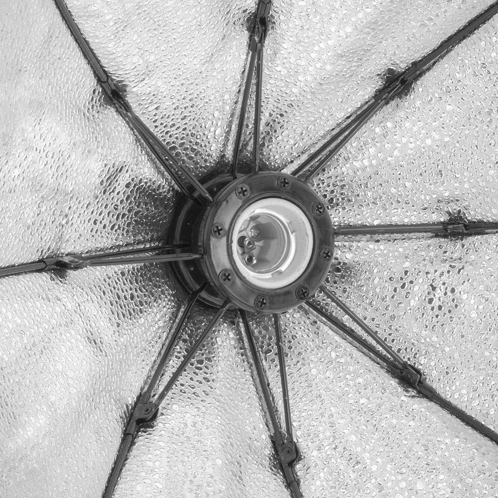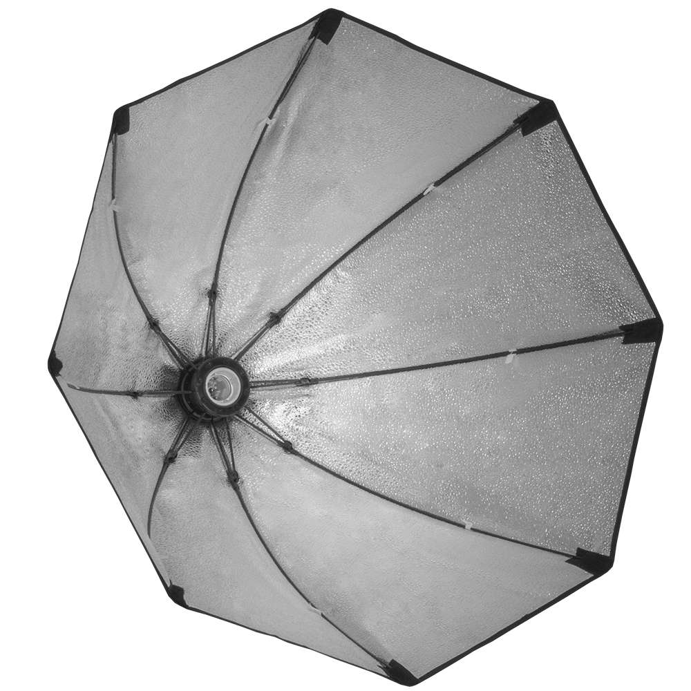 Niezawodny softbox typu octa, to taki który regularnie oświetli fotografowany obiekt, zmiękczy światło, wyeliminuje cienie na zdjęciach, a w przypadku fotografii portretowej pozwoli uzyskać ładny blik / odbicie światła w oczach modela. Wszystko to uzyskasz przy pomocy octy 60 cm zintegrowanej z oprawą na jedną świetlówkę z mocowaniem E27.