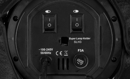Oprawa umożliwia skokową regulację mocy oraz oddzielne wyłączanie, dwóch sekcji po dwie świetlówki. Praktyczny uchwyt umożliwia łatwy montaż na statywach oświetleniowych.