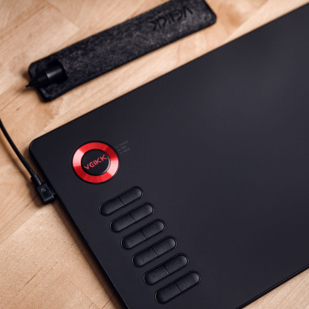 Tablet Veikk A15 został wyposażony w 12 programowalnych przycisków, do których można dowolnie przypisać najczęściej używane skróty klawiszowe oraz funkcje. Dodatkowe 2 przyciski znajdują się na bezprzewodowym piórku. To prawdziwy arsenał podręcznych guzików, które przyspieszą i ułatwią Twoją pracę!
