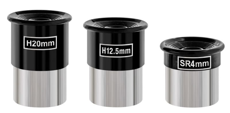 - Trzy okulary w zestawie SR4 mm, H12.5 mm, H20 mm o średnicy 1",
