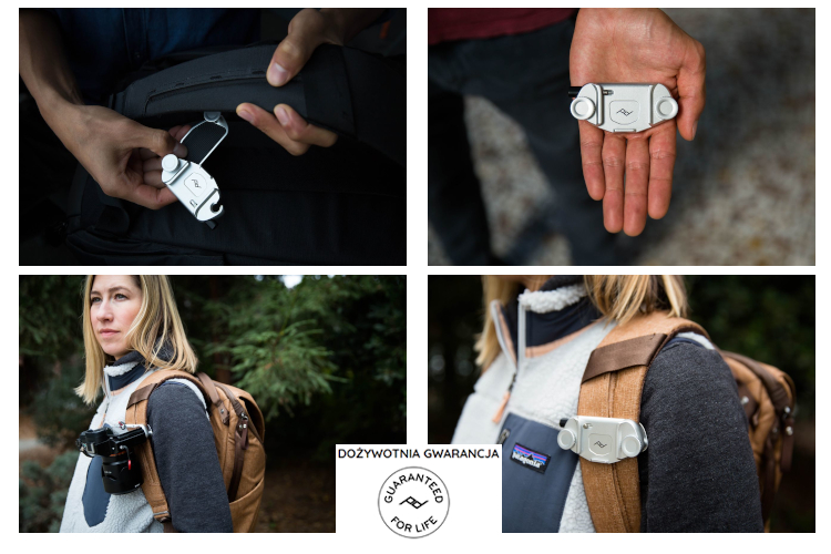 Urządzenie może pracować z różnymi płytkami Peak Design, możemy podpiąć lornetkę lub kamerę sportową.