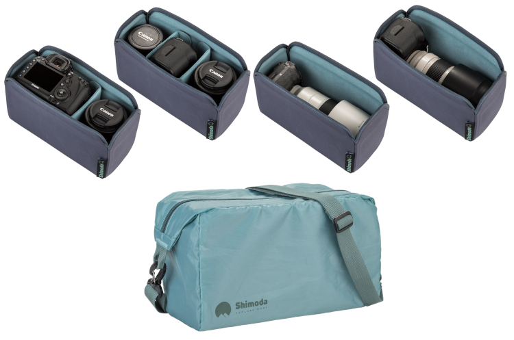 Wkład Shimoda unit small , zwiększa możliwość organizowania zawartości plecaka Shimoda Designs Explore Backpack. Zaprojektowany do przechowywania aparatu, wideo, audio lub urządzeń do mediów cyfrowych, może pomieścić lustrzankę, obiektyw ewentualnie bezlusterkowca, obiektyw. Sprzęt umieszczony we wnętrzu wkładu można rozłożyć przy pomocy przestawialnych przegród.