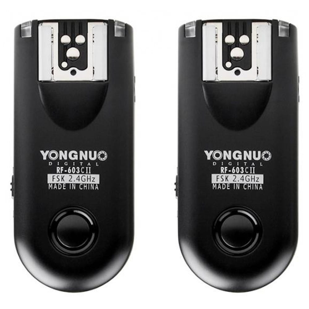 Yongnuo RF-603 II pozwalają na bezprzewodowe, radiowe sterowanie aparatem oraz wyzwalanie lamp systemowych oraz studyjnych z odległości nawet 270 m. Posiada funkcję pilota radiowego do wyzwalania aparatu. Pracuje na częstotliwości 2,4 GHz oraz posiada możliwość ustawienia aż 16 kanałów, co gwarantuje niezawodną pracę urządzenia w każdych warunkach.W nowej wersji wyzwalacza przeniesiony został włącznik, dzięki czemu użytkowanie stało się jeszcze wygodniejsze. Dodatkowo wyłącznik stał się dwustopniowy - możliwe jest włączenie RF-603 II jako nadajnika, lub jako nadajnika/odbiornika. Zapewnia to wygodniejsze korzystanie z wyzwalacza (możliwe jest bezproblemowe wyzwalanie podłączonych lamp "z ręki") oraz pozwala przedłużyć żywotność zastosowanych baterii.Wyjątkowe dla tego zestawu jest to, że zawiera dwa moduły, z których każdy może pracować zarówno jako nadajnik, jak i odbiornik. Dzięki temu zestaw jest bardzo uniwersalny oraz łatwy w rozbudowie.RF-603 II może jednocześnie wyzwalać lampę zdalnie oraz drugą na aparacie.Wyzwalacze lamp serii RF-603 II działają w częstotliwości 2,4 GHz. Gwarantuje to bezproblemową eksploatację i brak zakłóceń. Urządzenie jest zasilane popularnymi bateriami typu AAA. Ten mały zestaw to absolutnie niezbędne urządzenie w Twojej torbie fotograficznej! Zdejmij lampę błyskową z aparatu! Z bezprzewodowym wyzwalaczem Yongnuo RF-603 II możesz robić zdjęcie z czasem synchronizacji do 1/250s.Yongnuo RF-603 II możesz również użyć jako przewodowego lub bezprzewodowego pilota do sterowania aparatem z efektywnym zasięgiem 100m (w testach do 270m)
