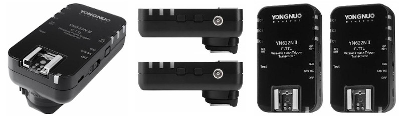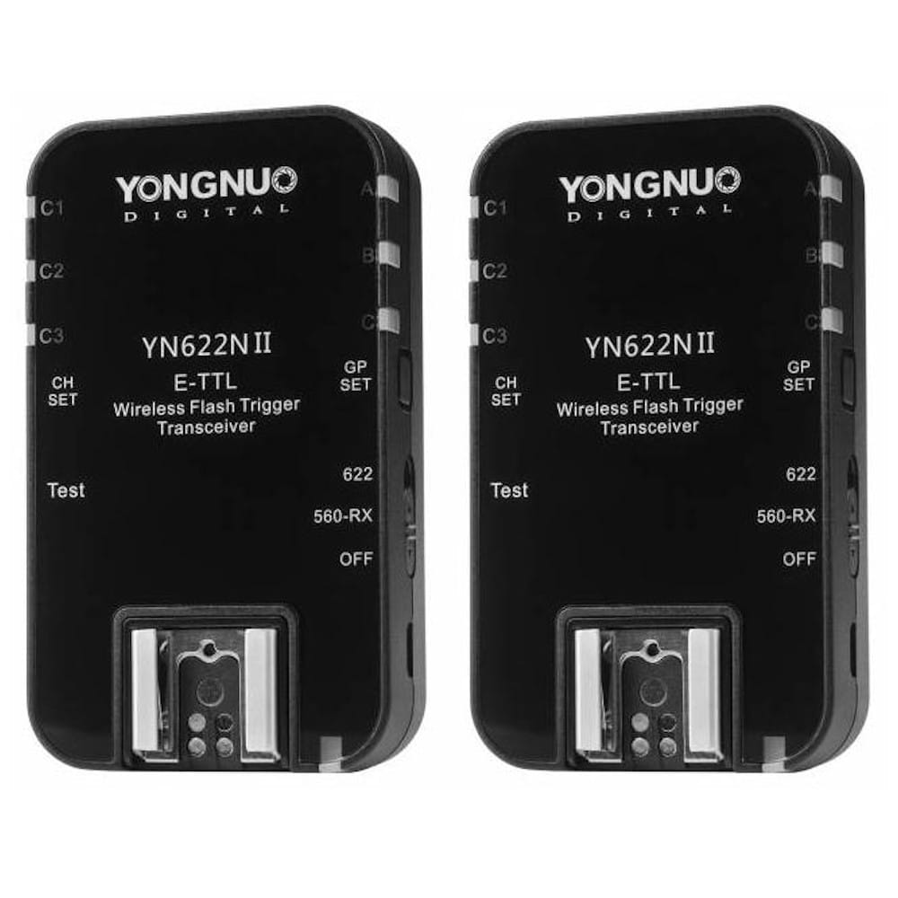 Yongnuo YN622N II to jeden z najbardziej zaawansowanych wyzwalaczy radiowych do lamp systemowych ( obsługujący zdalnie funkcje TTL ) oraz lamp studyjnych. Umożliwia zdalne sterowanie pojedynczymi lampami, bądź grupami lamp. Dzięki zakresowi 2,4 GHz, zasięg działania urządzenia osiąga 100 m. Dodatkowy wyzwalacz radiowy TTL 2,4GHz do systemu Canon E-TTL II / E-TTL 1 x nadajnik-odbiornik, zasięg do 100 m. Posiada wygodne sterowanie, oraz diody sygnalizacyjne, ułatwiające sterowanie grupami lamp. Dużą zaletą jest niezawodność działania, oraz wysoka jakość wykonania wraz z metalową stopką. YN622N II świetnie sprawdzi się rękach profesjonalisty, z uwagi na pełną funkcjonalność. Zadowoli również amatorów dzięki prostej obsłudze. Wyjątkowa użyteczność urządzenia znajdzie zastosowanie w zaawansowanym studiu fotograficznym, podczas reportażu lub sesji plenerowych. W komplecie znajdują się dwa urządzenia, możliwe jest jednak dokupienie i praca z dowolną ilością urządzeń (dla bardziej zaawansowanych systemów).
