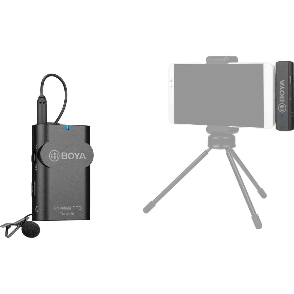 Boya BY-WM4 PRO to kompaktowy, bezprzewodowy system mikrofonów lavalier oferujący łatwe w użyciu, ekonomiczne i kompleksowe rozwiązanie do nagrywania jednego obiektu za pomocą urządzenia mobilnego ze złączem USB-C i systemem Android.