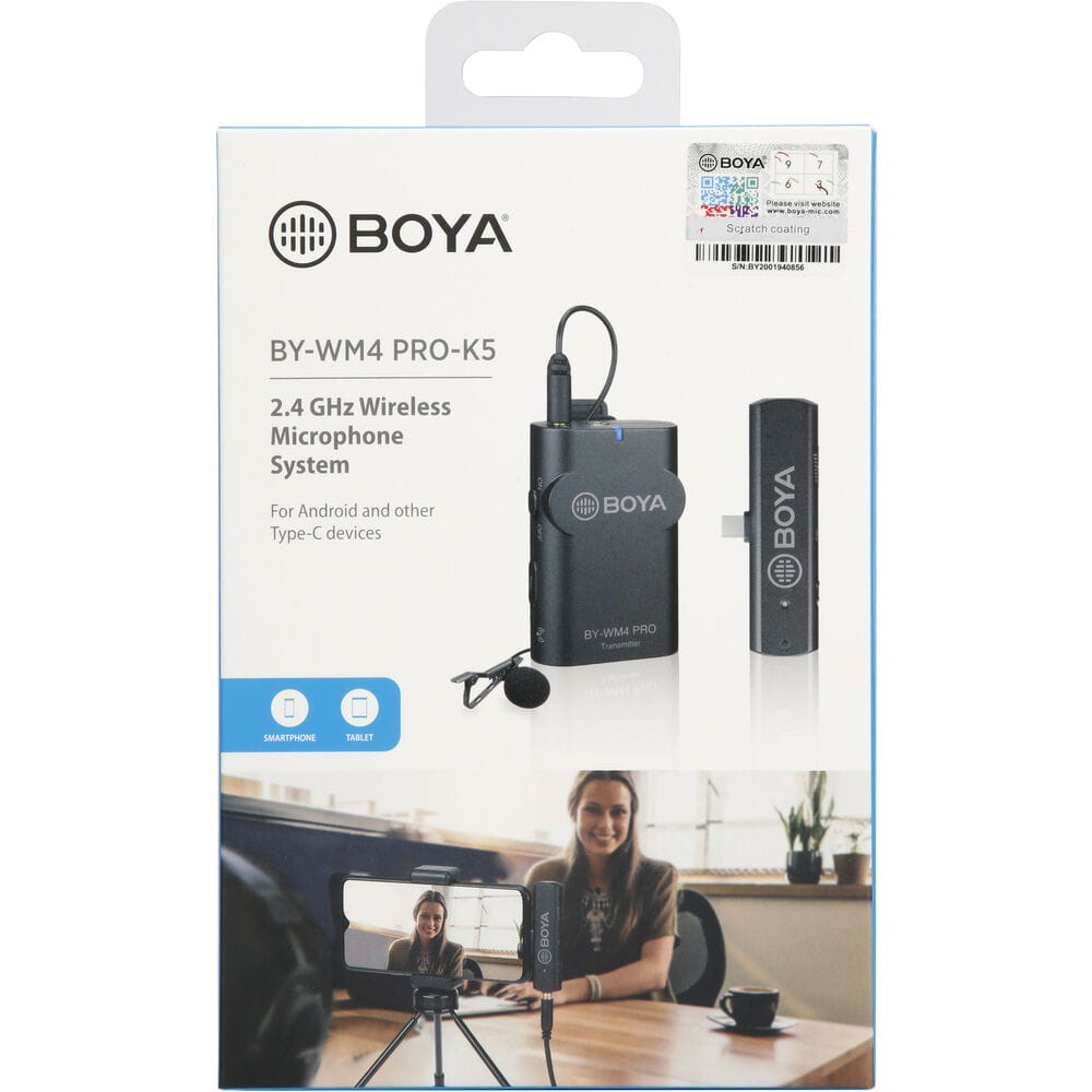 - Cyfrowy bezprzewodowy system mikrofonowy Omni Lavalier dla urządzeń USB-C Android (2,4 GHz) BOYA BY-WM4 PRO-K5,