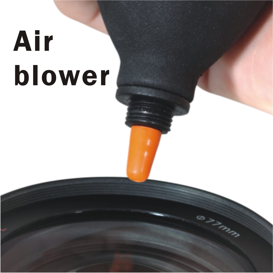 - Gruszka do przedmuchiwania powierzchni soczewek z drobnych pyłków i kurzu,