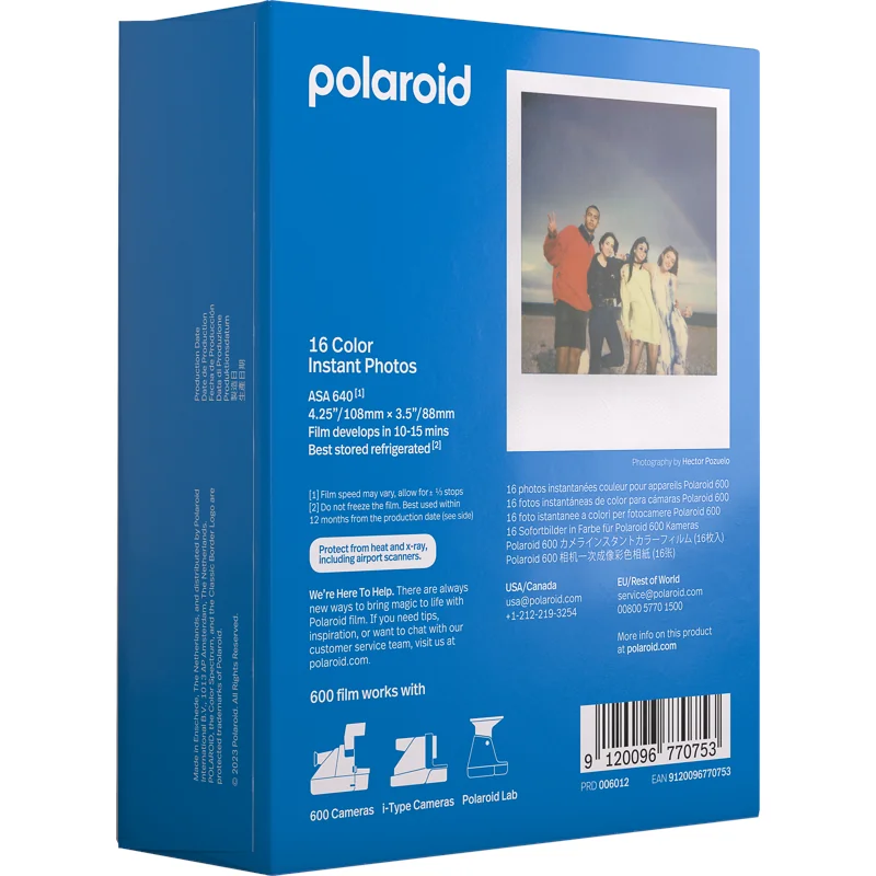 Wróć do zdjęć natychmiastowych robionych swoim starym Polaroidem. Wkład do aparatu Polaroid 600 ma wbudowaną baterię do zasilania aparatu. Polaroid 600 nie ma własnego zasilania i dlatego jest ono wbudowane we wklady do aparatu. Polaroid color 600 film daje naturalne żywe kolory. Polaroid 600 color zawiera osiem arkuszy zdjęć. Filmy mają czułość 640 ISO i oddają na zdjęciu klasyczny wygląd fotografii analogowej. Od chwili naświetlenia, zdjęcie Polaroid 600 wywołuje się od 10 do 15 minut. Obrazy zaczynają pojawiać się w ciągu 2 minut. Całkowicie wywołane zdjęcie widoczne jest do 15 minut. Wklady do aparatu Polaroid zawierają 8 sztuk zdjęć. Polaroid z serii 600 będzie gotowy natychmiast do pracy, jak załadujesz wkłady do aparatu. Wklad do aparatu Polaroid 600 mimo wbudowanej baterii pasuje też do aparatów z serii Now. Dla zachowania najwyższej jakości obrazu wkład 600 przed użyciem powinien być przechowywany w chłodnym miejscu.