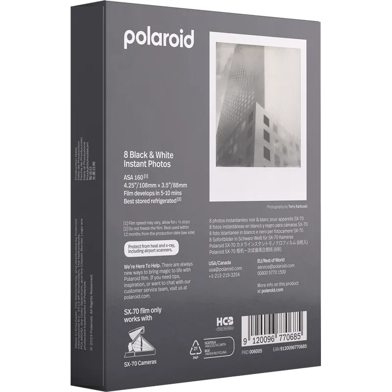 Polaroid wkład Polaroid SX70 Film B&W 8 zdjęć biała ramka