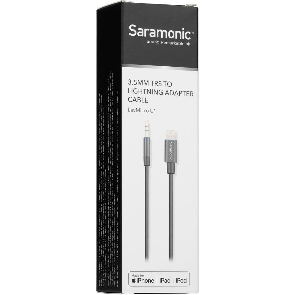 Kabel mikrofonu ma 2 metry długości. Zapewnia to możliwość na ustawienie się w optymalnej odległości od aparatu. Kabel składa się z dwóch sekcji. Pierwsza sekcja z mikrofonem LavMicro U1A na jednym końcu i żeńskim złączem TRS 3,5 mm na drugim. Druga sekcja z męskim złączem TRS 3,5 mm na jednym końcu i certyfikowanym złączem Lightning MFi na drugim końcu, daje możliwość podłączenia mikrofonu LavMicro U1A lub dowolnego urządzenia audio z wyjściem TRS 3,5 mm (w tym odbiorników bezprzewodowych i odtwarzaczy multimedialnych) do iPhone'a lub iPada.