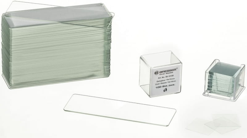 Zawartość szkiełka do mikroskopu Bresser - szkiełka podstawowe i szkiełka nakrywkowe