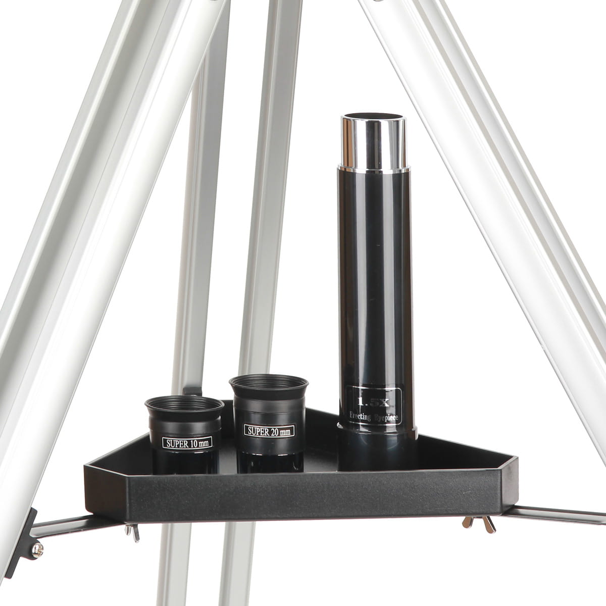 - Wyposażenie: Statyw wykonany z aluminium, wyciąg okularowy 1,25", okular Super 20 mm, okular Super 10 mm, kątowa nasadka pryzmatyczna 90°, szukacz optyczny 5x24 mm, soczewka odwracająca 1,25" x1,5,
