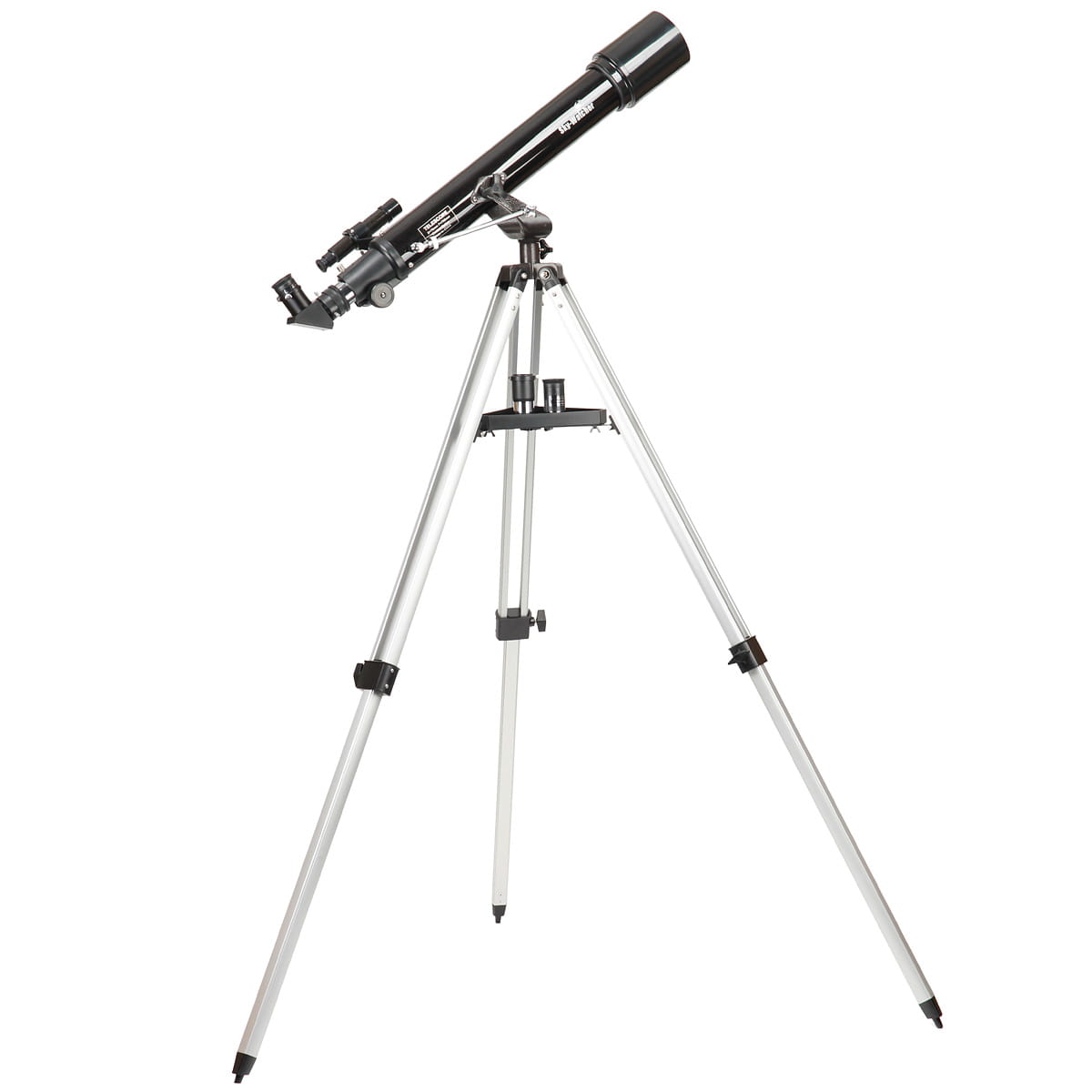 - Wyposażenie: Statyw wykonany z aluminium, wyciąg okularowy 1,25", okular 25 mm, okular 10 mm, kątowa nasadka pryzmatyczna 90°, soczewka Barlowa x2, szukacz optyczny 5x24 mm,