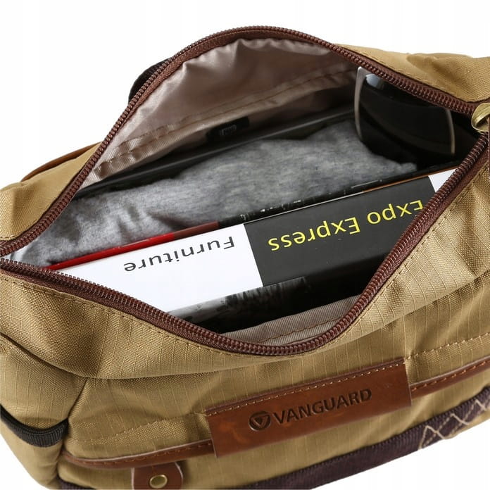 Główna komora torby fotograficznej vintage zapinana jest na zamek. W głównej komorze torby Vanguard znajduje się wyjmowany wkład dla bezpiecznego noszenia aparatu i obiektywów. Żeby zamienić torbę fotograficzną, w torbę codziennego użytku wystarczy wyjąć organizer. W ten sposób uzyskamy dużo miejsca na różne drobiazgi niezwiązane z fotografią. Wewnątrz torby na ramię, obok wkładu do aparatu, znajduje się wsuwana kieszeń z zakładką do przechowywania 7" tabletu.